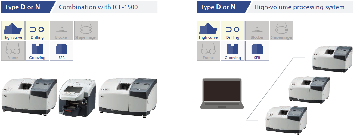 La unidad de procesamiento que ejecuta el taladro también realiza biselado y ranurado de seguridad de alta calidad en cualquier lente.
