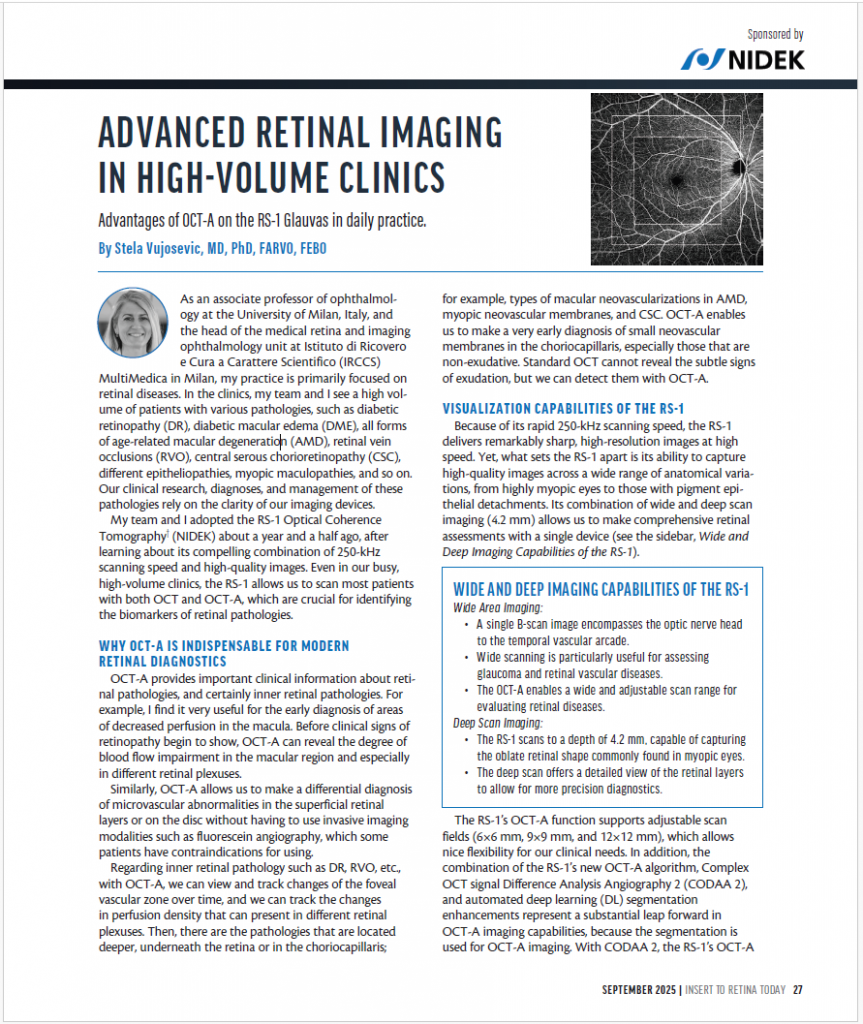 El RS-1 es un OCT innovador con velocidad de escaneo de 250 kHz, captura de imágenes de área amplia, profunda y de alta calidad, excelente operatividad y análisis basados en Deep Learning.