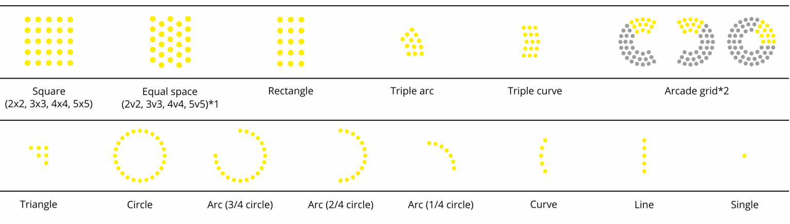 * 1 Para estándares de espacio igual, No. v No. indica el número de puntos en dirección horizontal y vertical.
