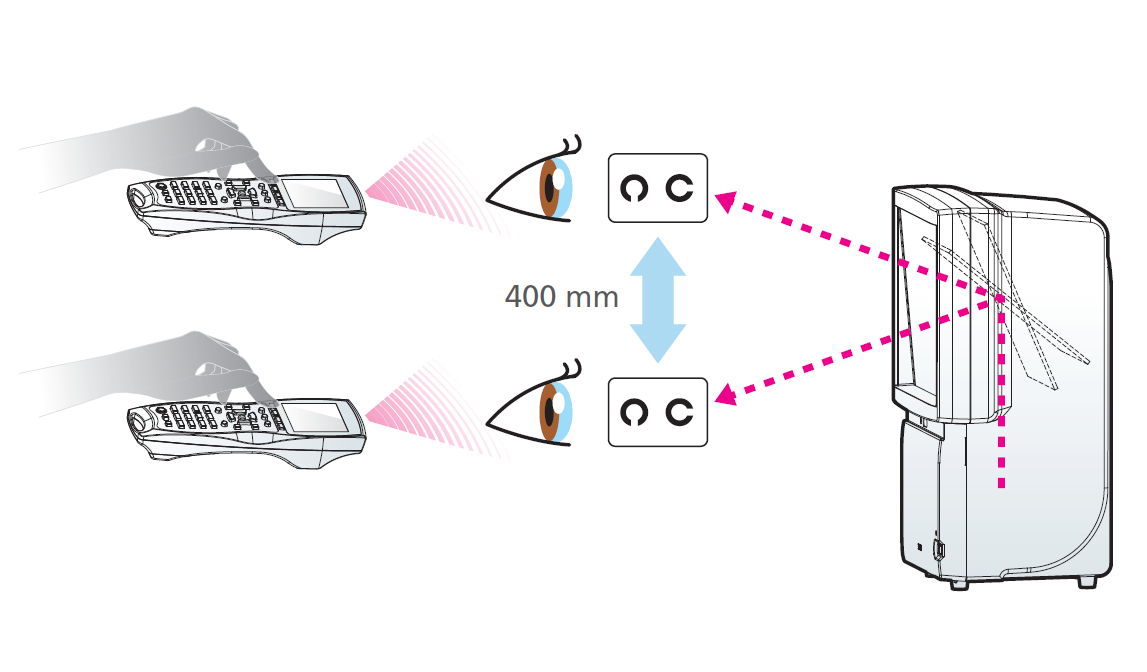 La operación simple del control remoto permite que la posición del optotipo se ajuste verticalmente para que cada paciente pueda ver el optotipo correctamente.