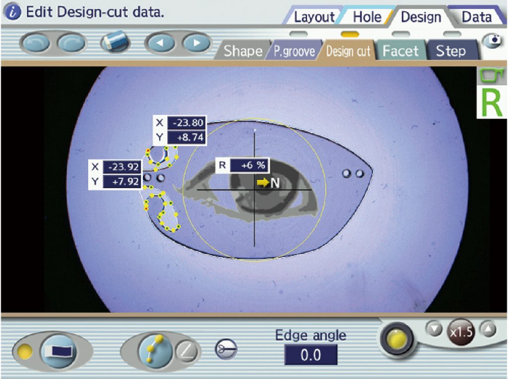 A ME-1 proporciona liberdade de design, processando lentes com base em formatos criados na blocadora. Combinado com o biselamento em degrau parcial, ele suporta até mesmo armações especiais que exigem lentes com design em estilo gancho, expandindo suas possibilidades criativas e funcionais.